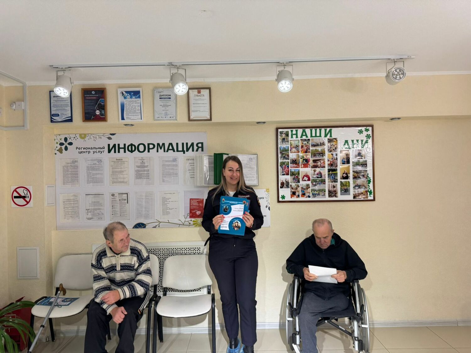 Сегодня наш центр посетили сотрудники полиции. Они провели беседу о машенничестве и рассказали как обезопасить себя от злоумышленников.